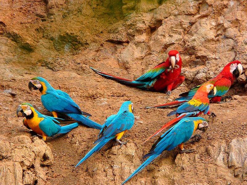 The output is at 3:00 in the morning, we pick you up at your hotel and we carry it in our mobility by the inter-oceanic Highway by a 2 hour tour approximately (48 km paved and 18 through the jungle) until you reach the Tambopata River where our boat will take you for a period of an hour and a half to the heart of the national reserve "Tambopata" After reaching the Macaw clay lick the world largest (CHUNCHO Collpa), where hundreds of parrots and macaws gather to eat clay as a supplement to your daily diet and do it on the side of the Tambopata River.